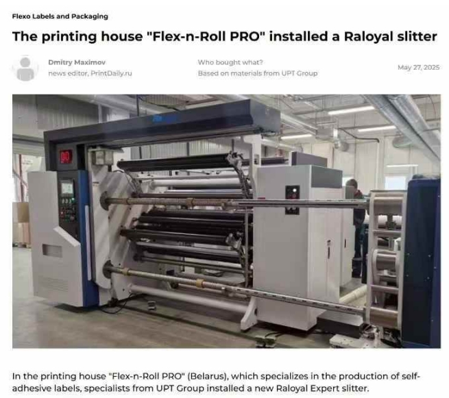 Xpert slitting equipment was installed in the largest printing factory in Belarus. The good operation and after-sales training were well received by customers. A signed article praising Raloyal was published in a local printing magazine.